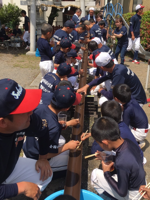 午後に開催した親睦バーベキューでは、焼きそば、お餅、カレー、流しそうめん、お肉等々、盛りだくさんのごちそうが並び、選手はもちろん指導者、父母とお腹いっぱい食べて、笑って、楽しい時間を過ごすことができました。