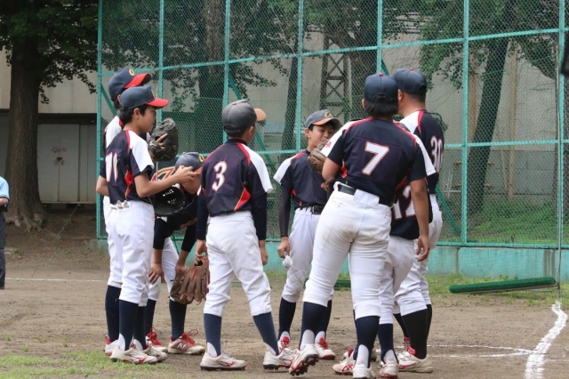 試合中、終わりの集合風景です。