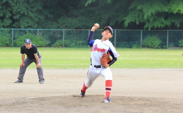 7回表の最終回、2年生の金子投手が登板し、見事抑えてくれました。金子投手の少し大人びた表情の投球も掲載しておきます(3枚目)。今後の活躍が楽しみになりました。