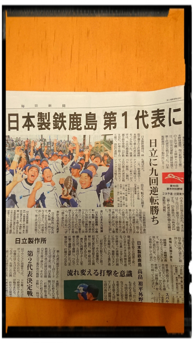 昨日、日立市民球場にて、いつもお世話になっております日本製鉄鹿島野球部が見事に日立製作所を破り第1代表を勝ち取りました✨✨✨