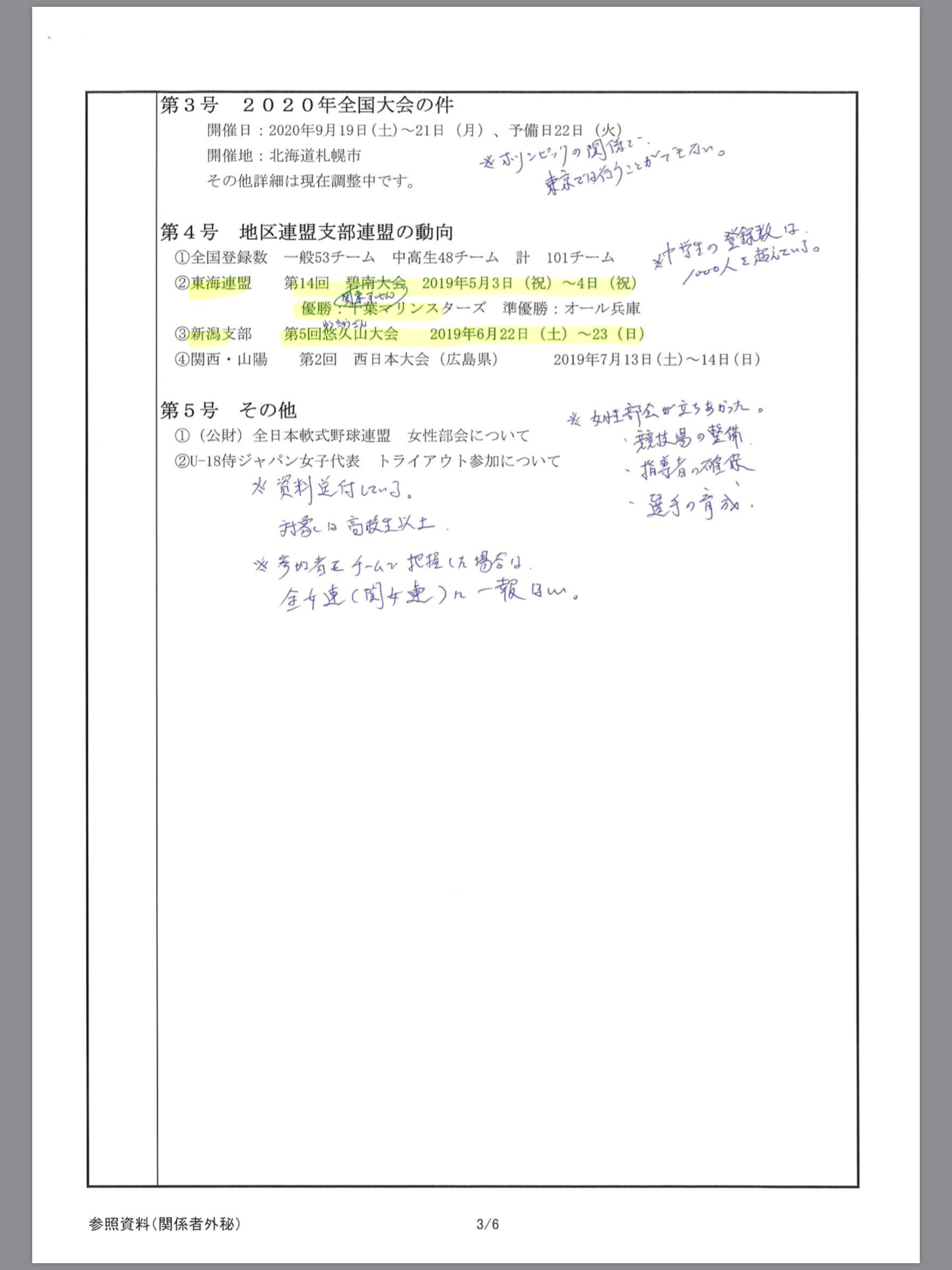 全国女子軟式野球連盟総会報告1
