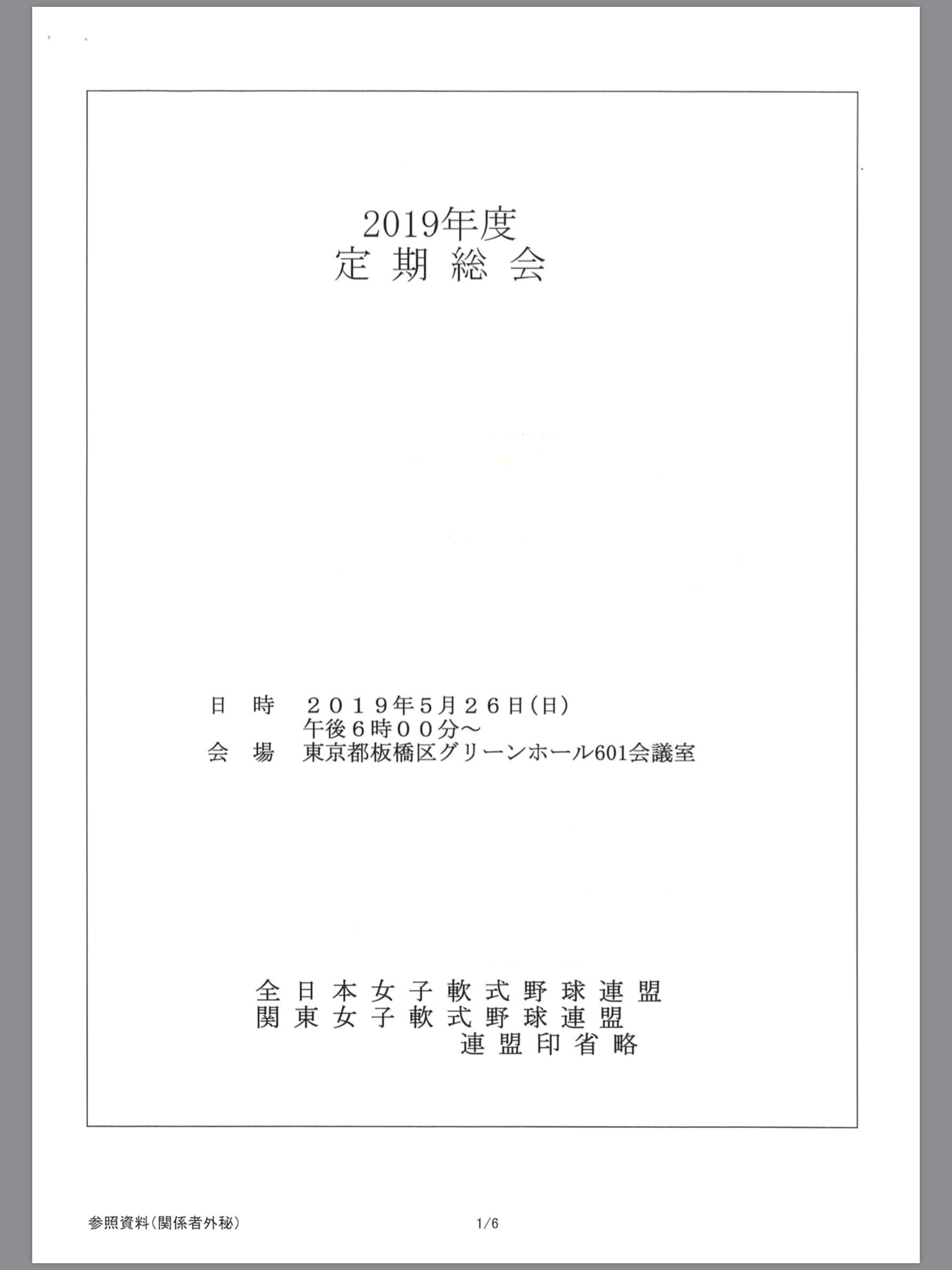 5月26日(日)全国女子軟式野球連盟総会に出席してきました。