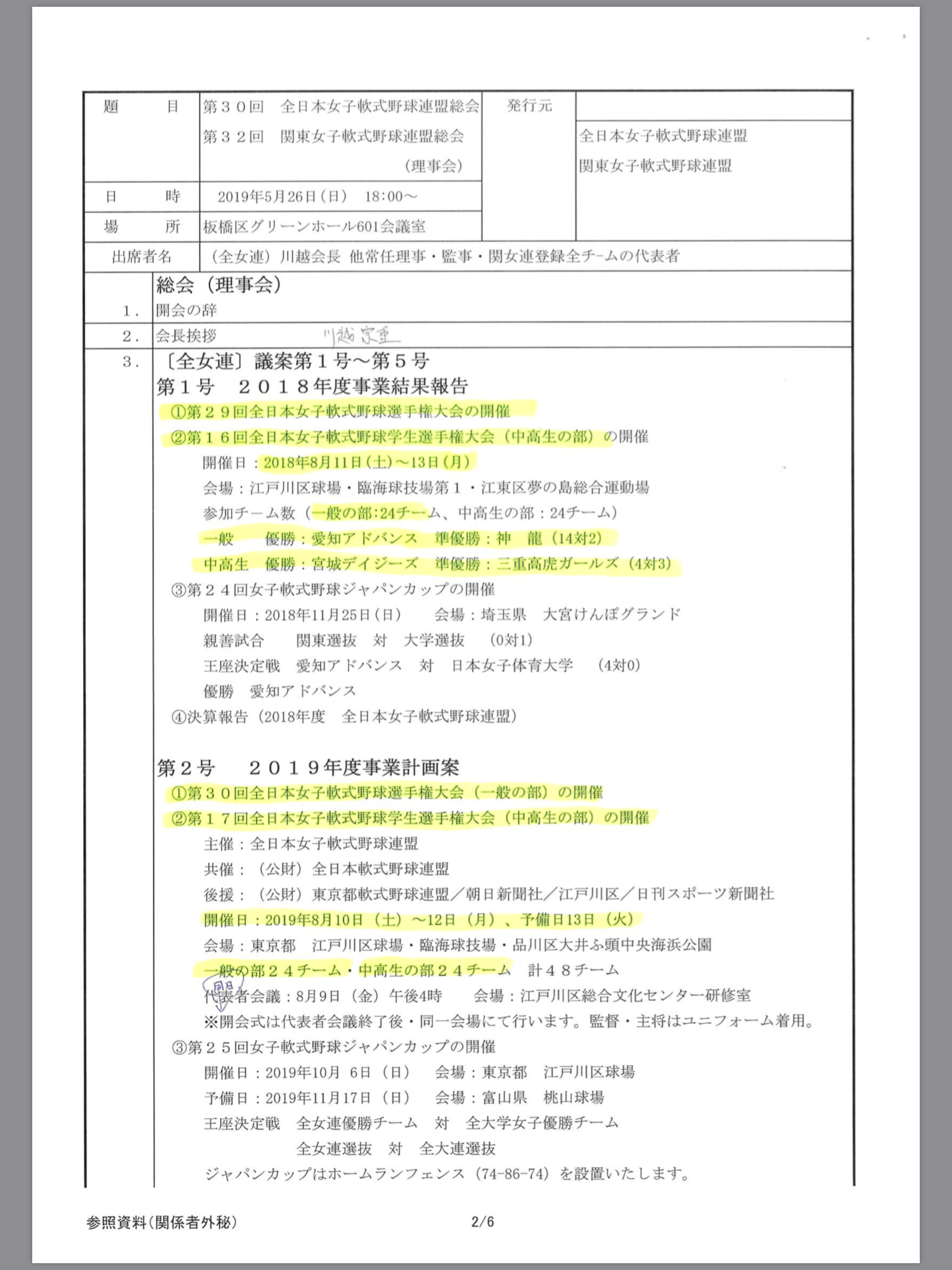 > 全国女子軟式野球連盟総会報告1