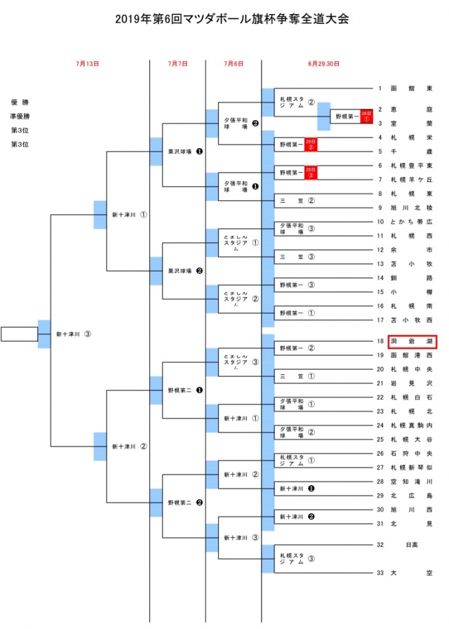 6月29日から行われるマツダボール旗杯全道大会の組合せが決まりました。本大会は1、2年生の新人チームでの大会となります!!