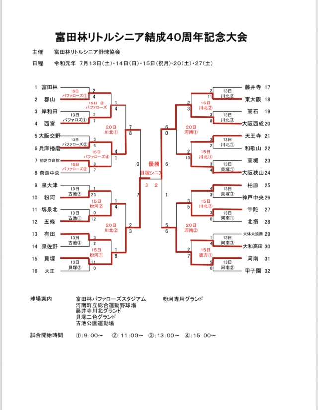 > 富田林リトルシニア結成40周年記念大会