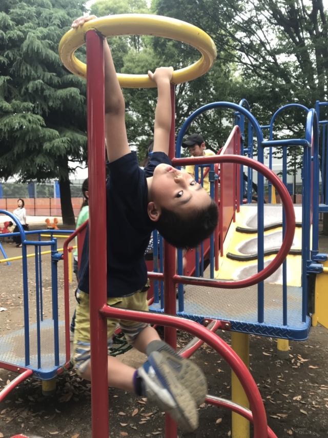 公園で筋トレ中だそうです!