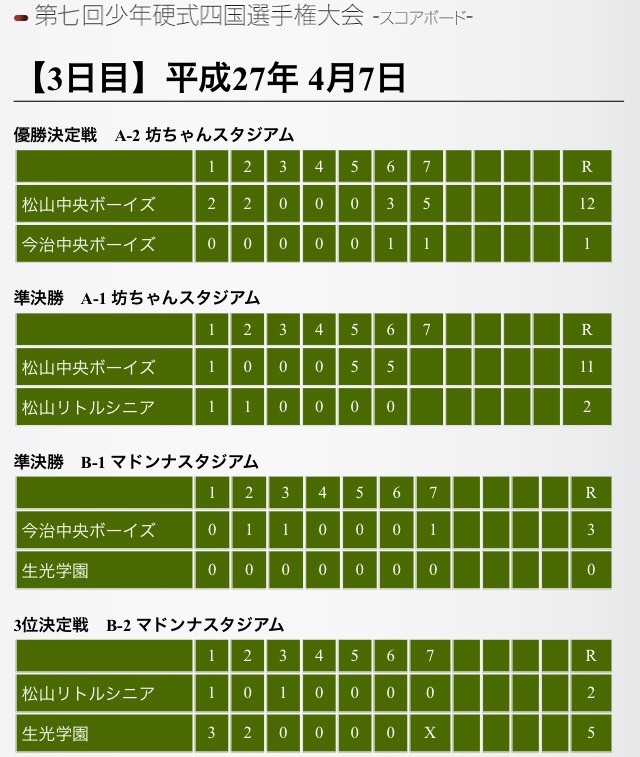 四国選手権は、藍住が準々決勝で敗れた相手の松山中央ボーイズが優勝しました。
