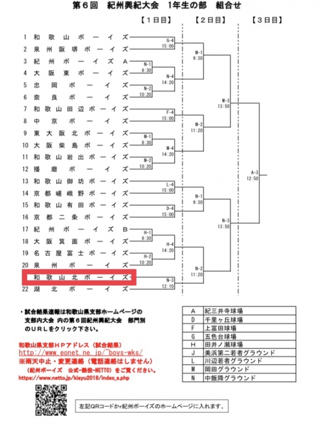 第6回 紀州興紀大会 組合せ