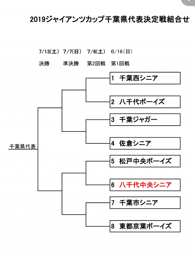 > 2019ジャイアンツカップ千葉県代表決定戦組合せ
