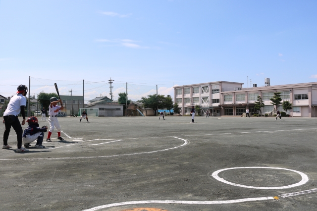 午後からは浅井南小学校へ移動し、浅井少年野球クラブさんとBチームの練習試合。