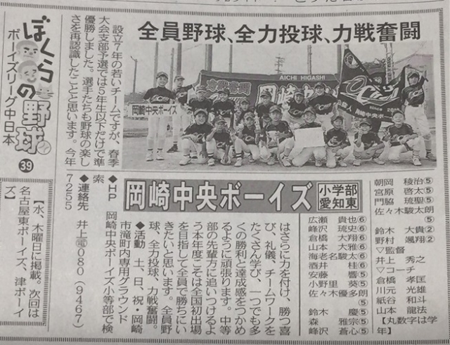岡崎中央ボーイズのチーム紹介が掲載されました。
