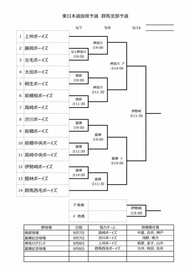 第31回 東日本選抜大会群馬支部予選の 対戦相手決まりました。