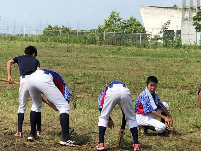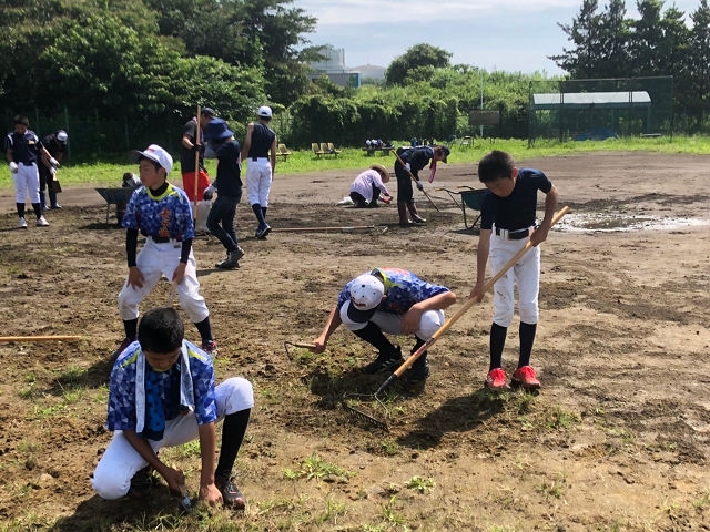 朝からムシ暑いこの日、練習前にグラウンド造りに励みました!
