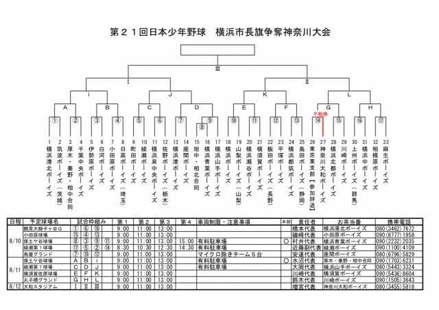 第21回日本少年野球 横浜市長旗争奪神奈川大会組み合わせ