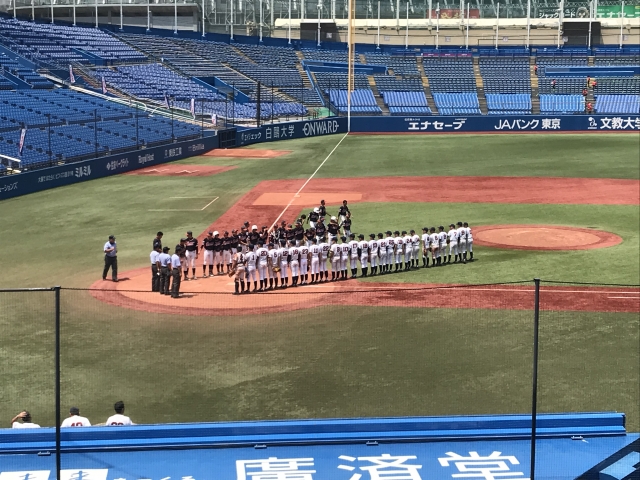 初回、好調の伊藤のヒットから、四球や相手のミスもあり、1点を先制。しかし、3回に四球からタイムリー、犠飛などで2点を奪われ逆転された。その裏に同点に追いついた後、5回に辻のタイムリーヒットで逆転に成功。6回にも小椋のタイムリーで追加点を挙げて逃げ切った。先発、服部も四球で球数が多かったものの、粘りのピッチングを展開。