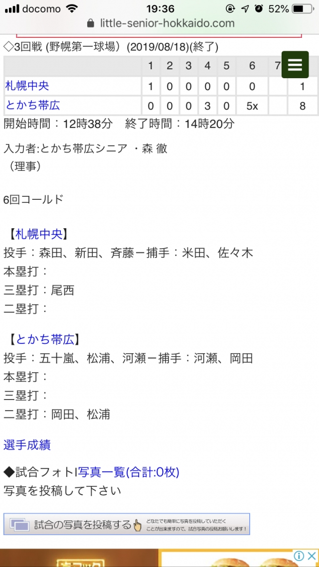 まだまだ暑い夏に、とかち帯広は躍進しました。選手一丸となっての勝利。4人の3年生の意地と1.2年生の成長を感じる試合でした。24日は円山球場で札幌大谷シニアさんです。たくさんのことを学び、野球を楽しみたいですね!