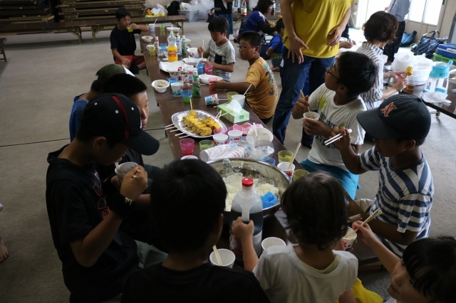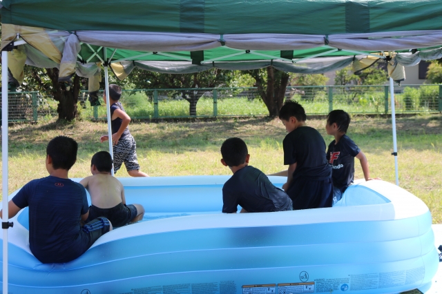 草むしりの後は、お楽しみのBBQ&水遊び!!