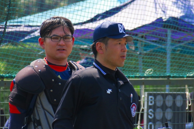 1枚目の写真は、9期審判部長の君島さんが8期審判部長の山口さんに教えを受けているシーンです。2017年5月のことですが、その後、山口さんは、子供が卒団しても審判を続けています。野球に関わるのが好きなのですね。