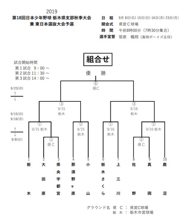 【第18回日本少年野球 栃木県支部秋季大会 兼 東日本選抜大会予選トーナメント表】