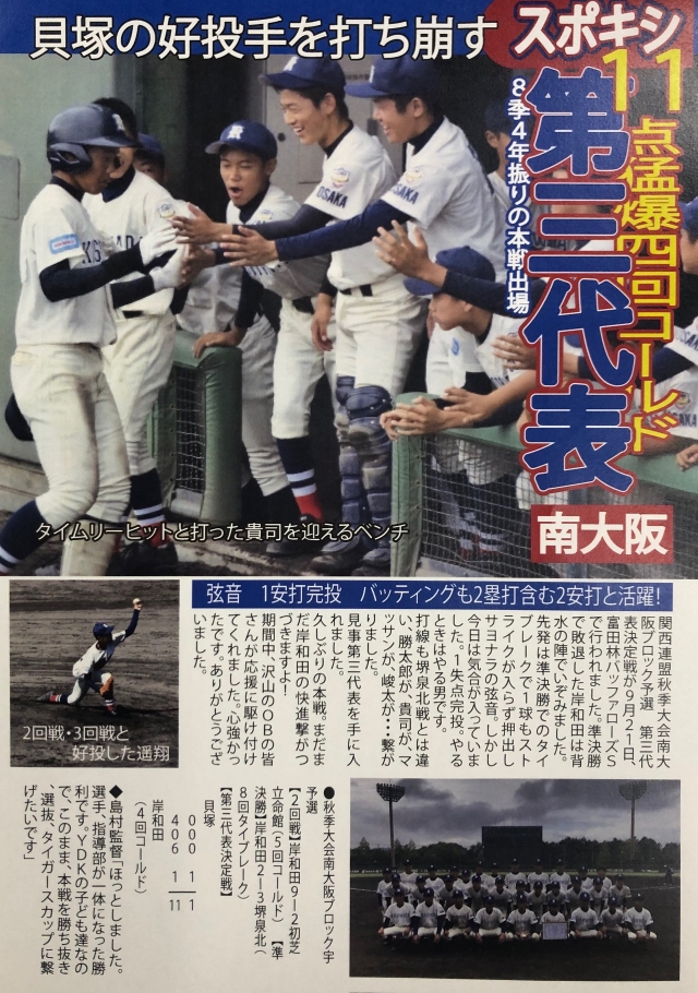 本戦ではもちろん各ブロックを勝ち上がったチームばかりですが、岸和田も100%力を出せると、選抜、タイガースカップが見えてきます。