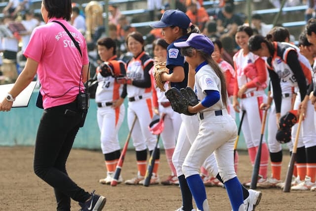 9月22日 朝霞中央公園野球場にて女子プロ野球の試合の観戦と試合後の野球教室に、朝霞リトルのメジャー選手が参加しました。