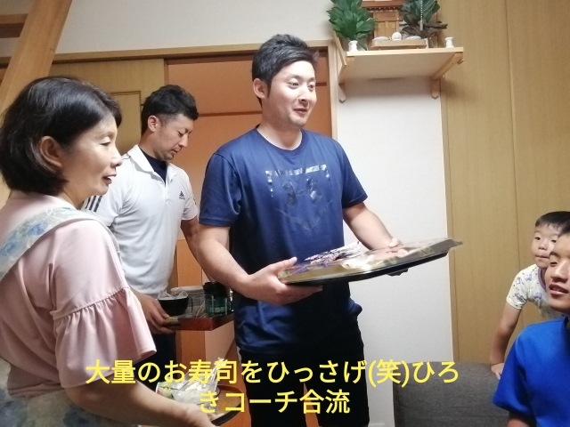 手にはお土産の大量のお寿司が(笑)