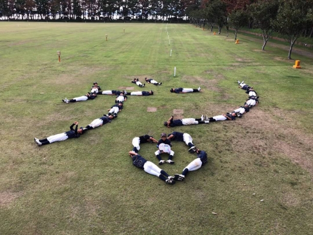 練習試合終了後、お別れ会を開催し、1年生全員で「ゲン💛」の人文字を作りました。