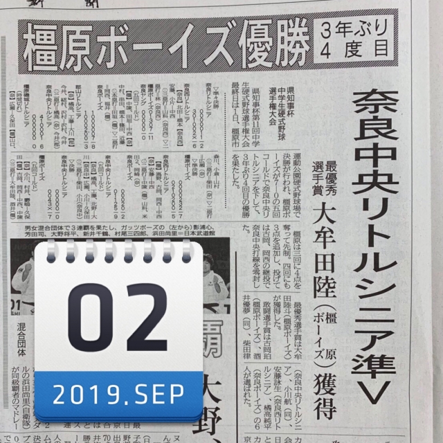 奈良県知事杯 第11回中学生硬式野球選手権大会 準優勝 新聞掲載!