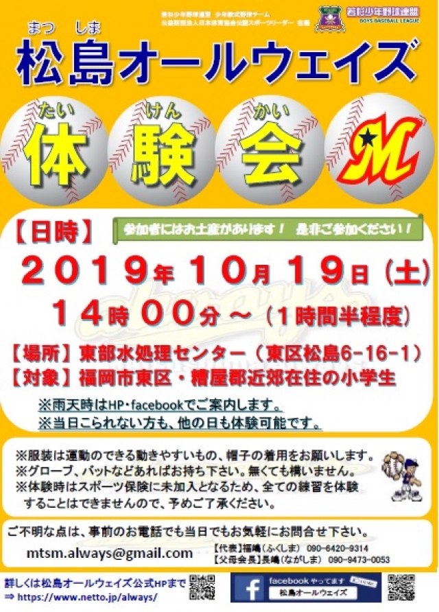 ※雨天時はHP・facebookでご案内します。