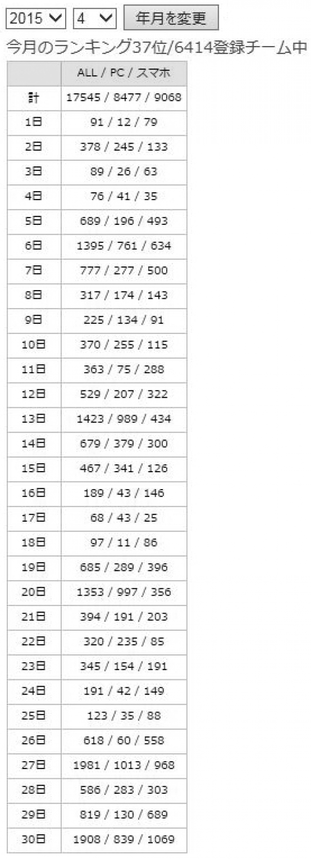 新年度となり新たに16名の選手を迎え、信越連盟春季大会中南信ブロック2回戦突破し本大会出場を決め、伊北シニア盛り上がっております。それを表すような数値が出ました! 4月の月間ホームページアクセス数が過去最高の [17,545] を記録しました!(ちなみに今までの記録は2014年10月の[15,519])本当に多くの方にご覧頂きありがとうございます。ご要望にお応えするべく更新してまいりますので、今後ともよろしくお願い致します。只今、掲示板は開設しておりませんので、ご意見・ご感想等は「問い合わせ」ページから、または、HP担当者までご連絡下さい。