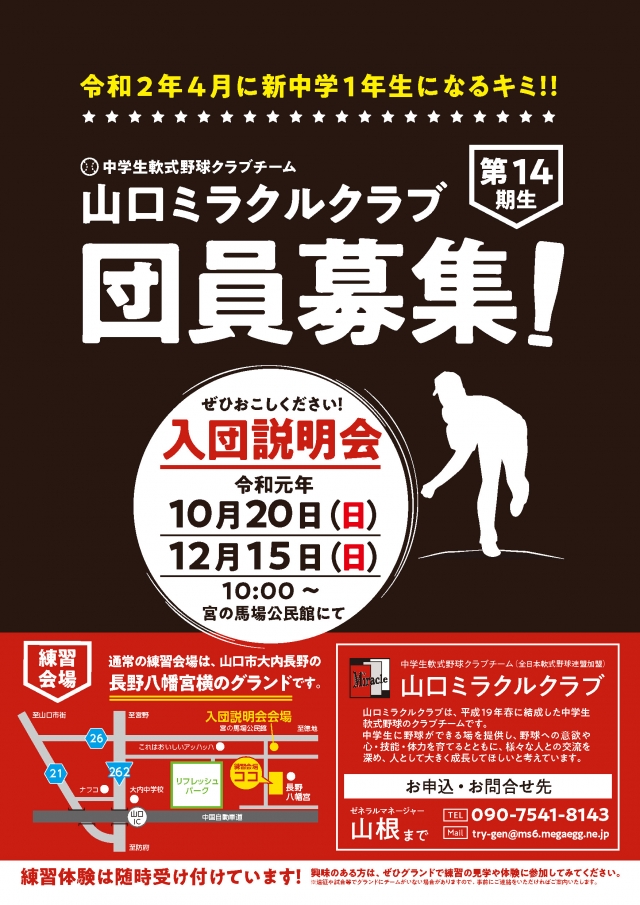 つきましては,入団説明会(2回目)を12月15日(日)に開催します。