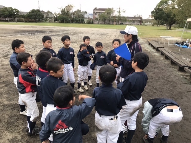 旧河内中体育館で合同練習をしながら、雨が上がるのを待ち、結果的に河内町中央公民館球場で、午後から練習試合をしました👍