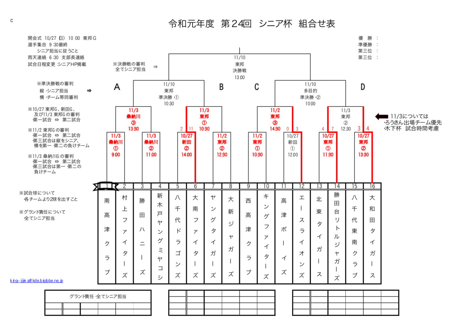 第24回八千代リトルシニア杯組み合わせ試合結果