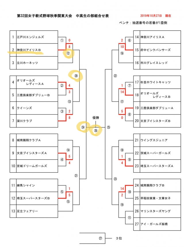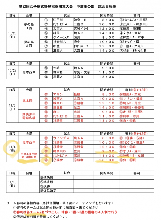 > 2019秋季関東中高生大会 試合場所等変更の連絡