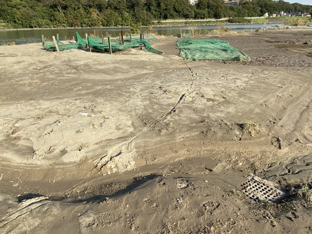 荷物置き場周辺は砂浜が出来てます。
