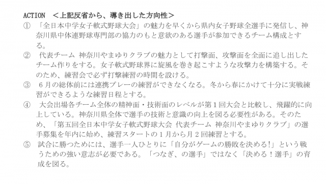 第五回全日本中学女子軟式野球大会への指針とします。