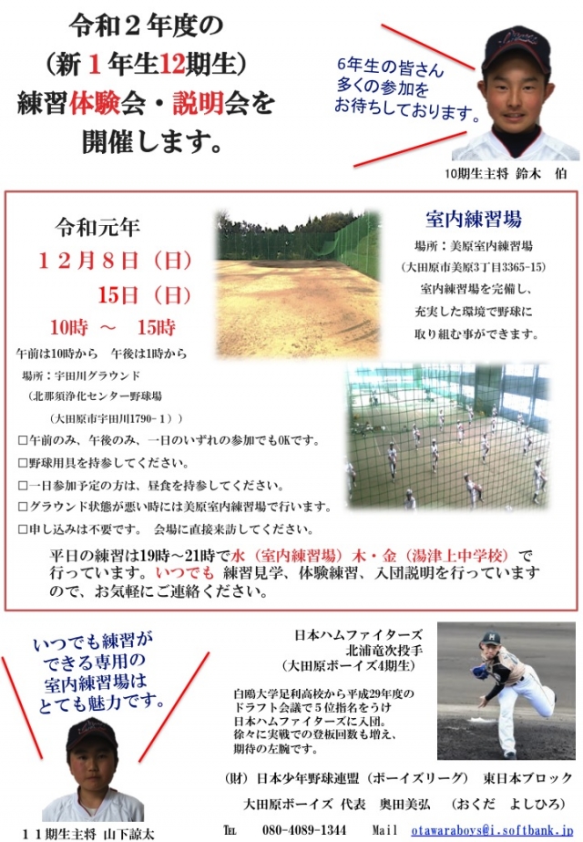 令和元年12月8日、15日に練習体験会・説明会を開催します。