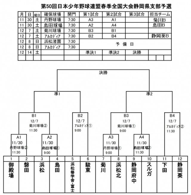 第50回日本少年野球連盟春季全国大会静岡県支部予選トーナメント表