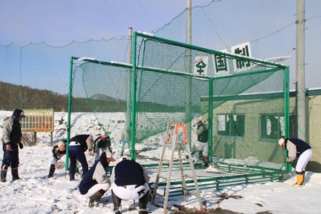 雪が積もる中ではありましたが、団員、関係者の皆さんが集まって下さり、無事にグラウンドを納める事ができました。ご協力いただきました皆さま、本当にありがとうございました。
