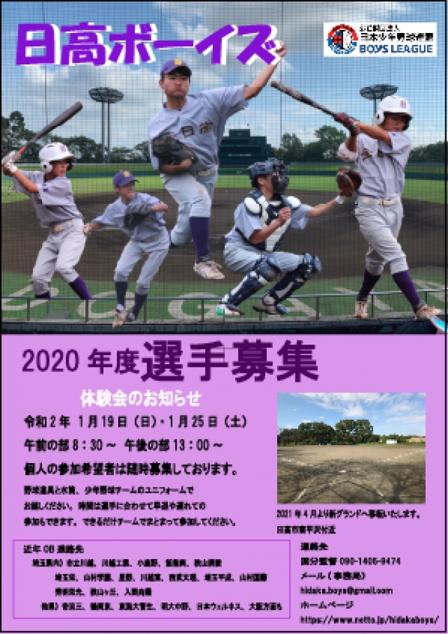 2020年の選手募集についてお知らせいたします。