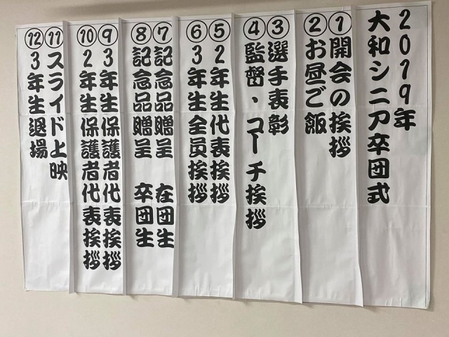 3年生が巣立っていきました。1、2年父兄が手作りでとても暖かい会になりました。ラストは40分の超大作DVD上映会、感動と笑いの大和シニアらしい卒団式でした。