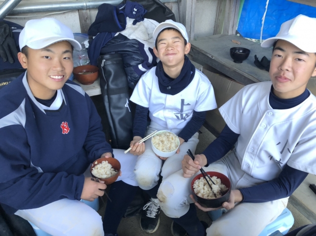 奈良リトルシニアOBの丸山太一様(20期生)(有限会社まるやま食品)から筍ご飯の差し入れを頂きました。選手達は補食の時によばれました。炊き上がった時、とてもいい香りがして、普段より選手達はたくさん食べてくれました。この冬、選手等にはたくさん練習して、たくさん食べてもらい春にはひとまわりもふたまわりも大きくなってもらいたいと思います。丸山様ありがとうございました。