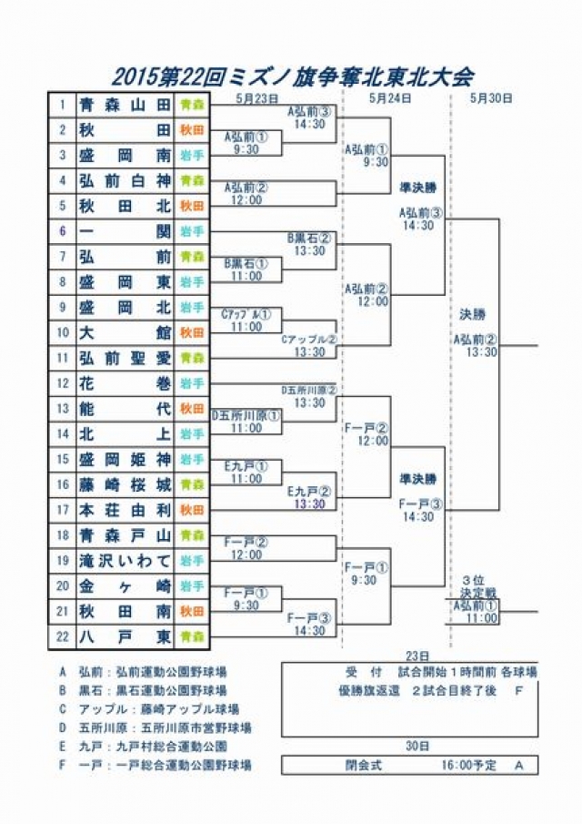 第22回ミズノ旗争奪北東北大会 組合せ決定!