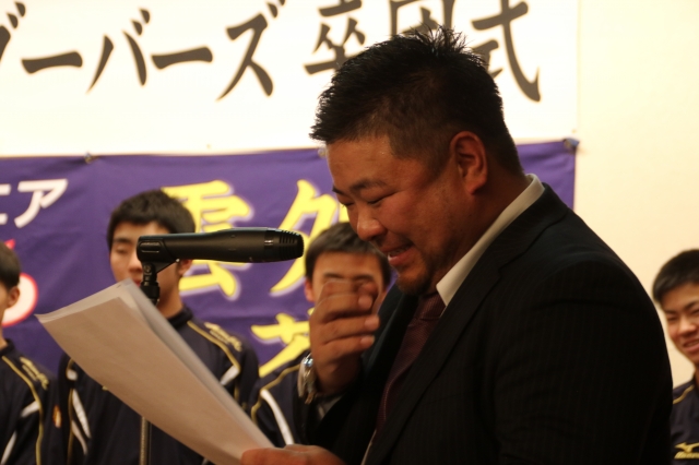 指導部から、選手達へのスピーチ。
