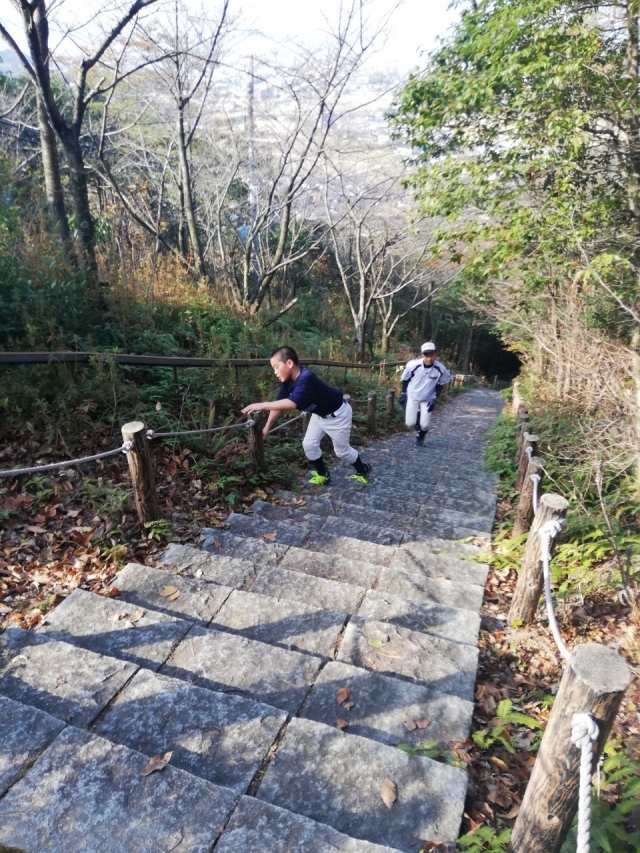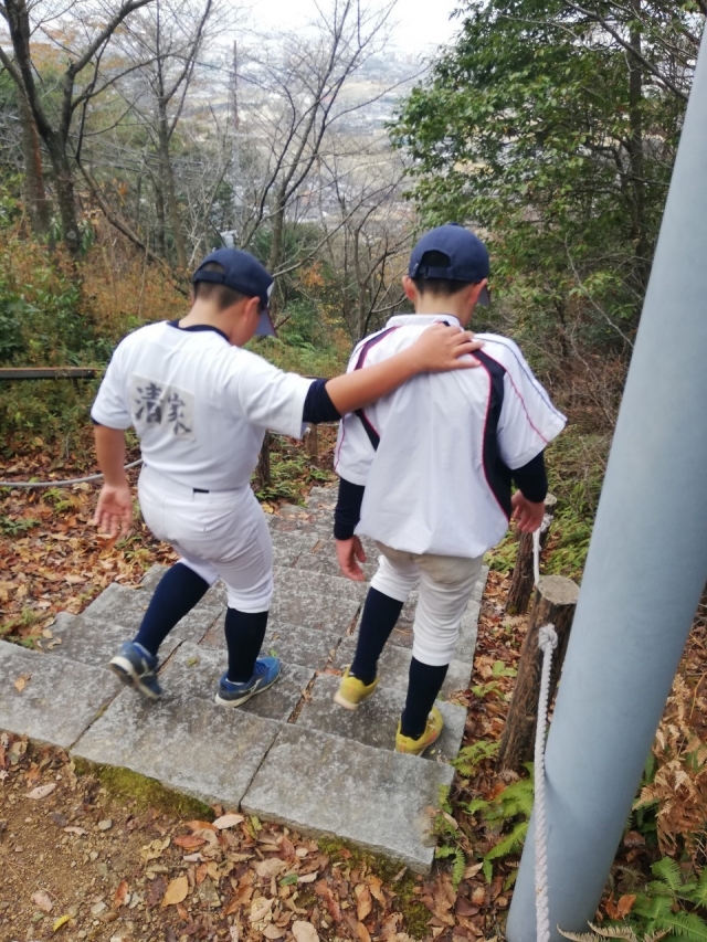 12/14 日向山トレーニング 栗東市にある日向山には721段の石段があります。その石段を利用させていただき4期生、5期生、そして卒団した3期生の先輩も参加し、トレーニングをさせていただきました。 石段を何回も何回も駆け上がり、足腰のトレーニングはもちろん自らの限界にチャレンジし、そして、限界を突破しようとする気持ちは己に打ち勝つトレーニングにもなります。 何よりも苦しい時をチーム全員でみんなを励まし合いながらやり遂げるこの経験は来年必ず生きてくるでしょう。 歴代の先輩もこの、日向山トレーニングで個々に向き合い、チーム力を高め合い成長してきました。 この成果を4期生、5期生のチームでも発揮できるよう期待しています!