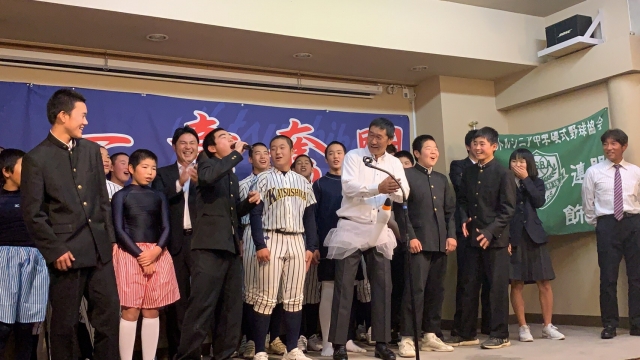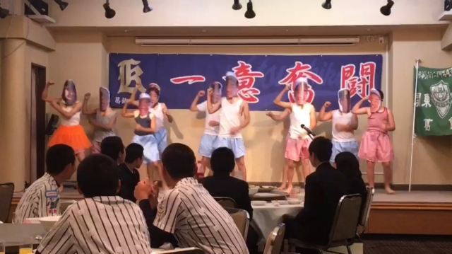 在団生からの送別パフォーマンスで大笑いし、