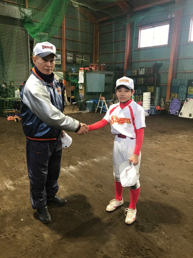 入団してくれた選手には、写真のとおり無料で練習用の帽子をプレゼントしています。