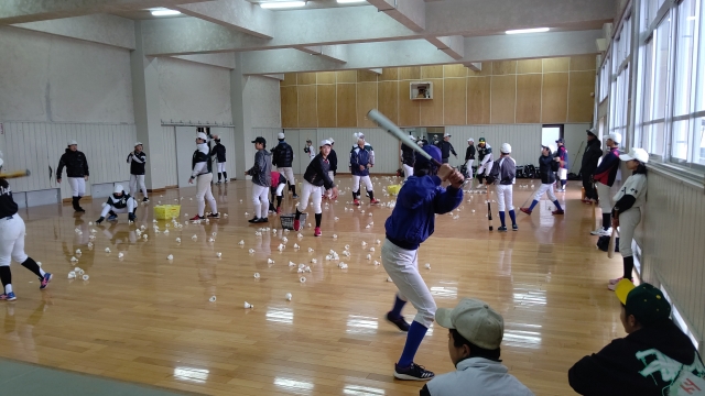 本来は、グランドでバッティングやノックをして、軟式球と硬式球の違いを感じて頂きたかったのですが・・・