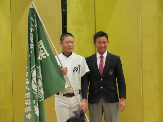 荒川リトルシニア 新旧キャプテン団旗継承