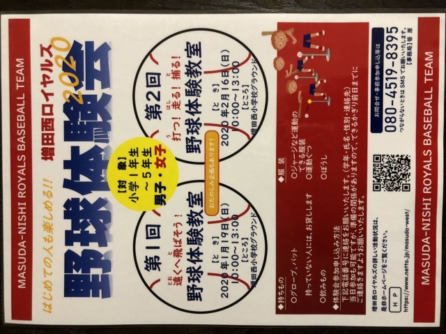 2020シーズン野球体験会のお知らせ